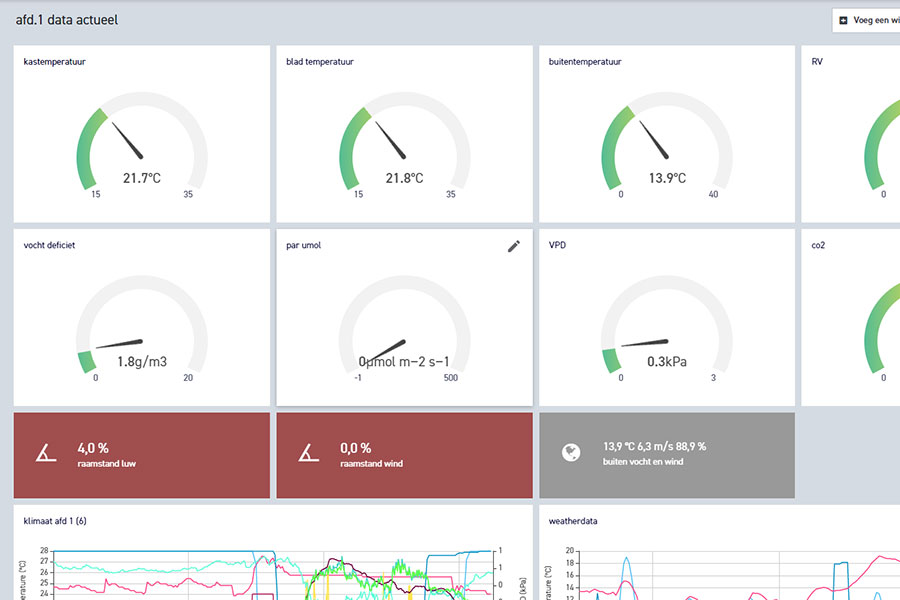 Koningsrust Teeltbegeleiding maakt gebruik van een dataplatform waarbij de gebruiker zelf bepaalt welke data hij inzet en gebruikt. De informatie wordt geanalyseerd en gevisualiseerd op een dashboard. De meetgegevens laten zien of de planten groeien volgens het opgestelde plantmodel.